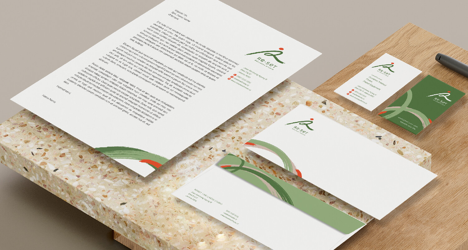 To introduce this new brand, we developed its full visual identity, from the logo to communication materials. The logo is derived from the letter R, the brand name's initial. This basic letter was then abstracted into a more flexible shape and drawn with a freestyle brush stroke to represent the flexibility seen in Pilates and Gyrotonic movements. An earth-tone palette brings calm and balance, while a vibrant orange accent adds energy and a sense of active motion.